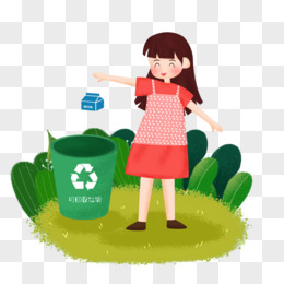 手绘卡通女孩扔可回收垃圾