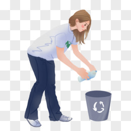 卡通手绘小男孩把垃圾扔到垃圾桶元素