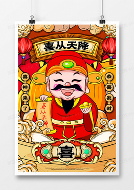 创意手绘国潮风新年喜神福禄寿喜系列海报设计