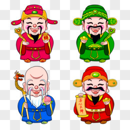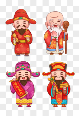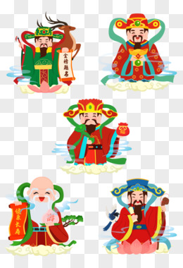 一组手绘Q版新年福禄寿喜神仙形象素材