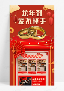 红色国潮中国风喜庆龙年到爱不饰手春节珠宝长图