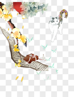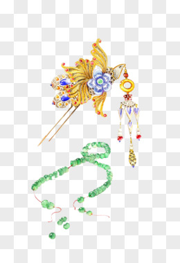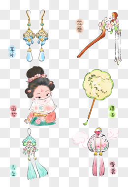 一组手绘卡通水墨风格汉服女性装饰首饰元素合集