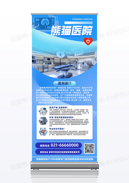 科技蓝色熊猫医院医疗背景医院简介展架