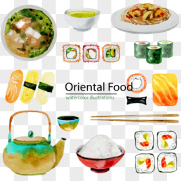 水彩东方美食的集合矢量图