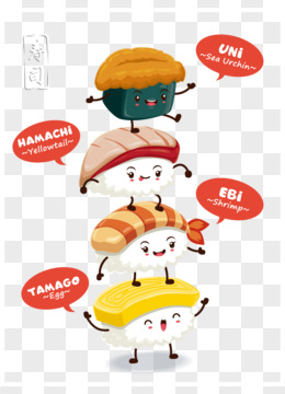 龙纹祥云挂饰与日本寿司等矢量素材免费下载,