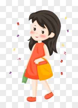 618之手绘卡通女孩购物