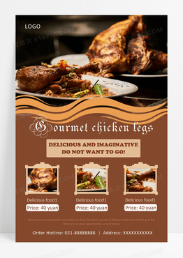 餐饮美食棕色美味鸡腿鲜嫩型宣传单宣传海报