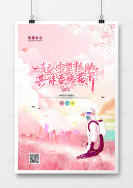 渐变唯美一起守望相助共待春暖花开免抠矢量艺术字