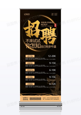 黑金高端大气风格手写字体中国风招兵买马招人招聘展架招聘易拉宝