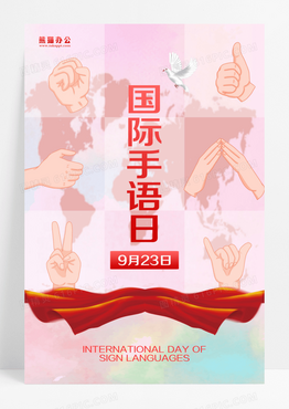 国际手语日手势红色海报设计