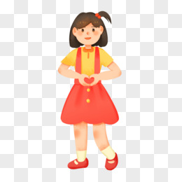 手绘卡通女孩手语比心免抠素材