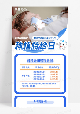 蓝色科技感种植牙特诊日牙齿手机长图