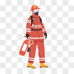 手绘卡通消防员手拿灭火器人物形象元素