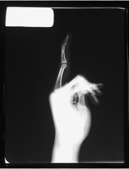 伸出一根手指的手部x光图像