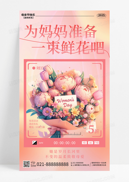 粉色渐变为妈妈准备一束鲜花母亲节促销手机宣传海报
