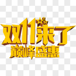 双11来了黄色渐变艺术字