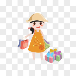 双11卡通简约可爱女孩爱购物元素