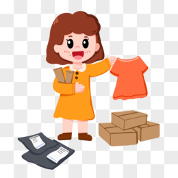 手绘女孩拆自己喜欢的快递免抠元素