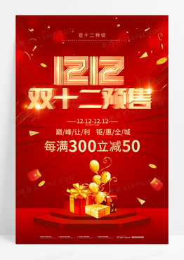 红色简约双十二年终盛典双12大促海报红色简约双12促销海报