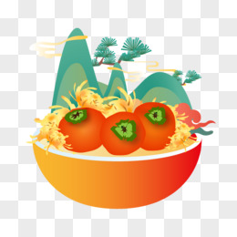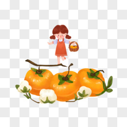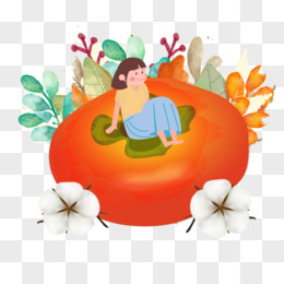 手绘插画风秋天一家人在柿子上拍亲子照元素