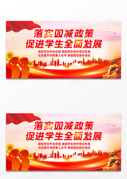 红色简约落实双减政策促进学生全面发展双减展板宣传
