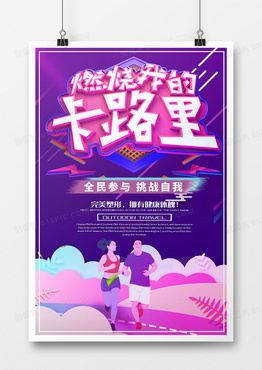 创意卡通可爱扁平创意简约卡通紫色马拉松海报