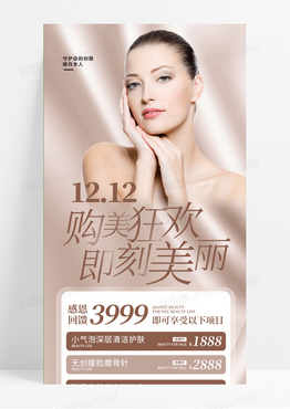 香槟色大气简约双十二医美促销长图海报