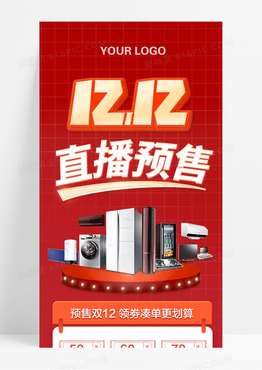 红色喜庆双十二钜惠直播预售双12电商促销长图双十二直播长图