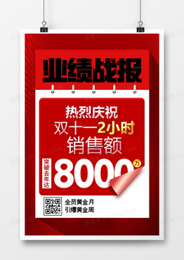 简洁红色天猫双十一销售业绩喜报海报设计