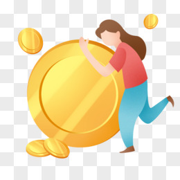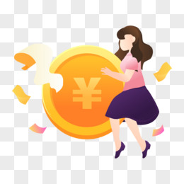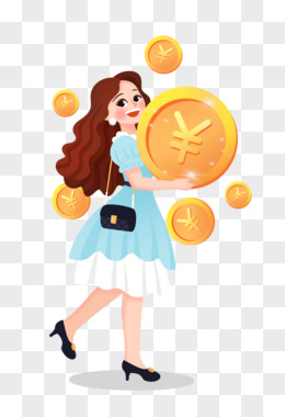 矢量女人抱着金币免抠元素