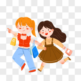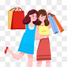 卡通闺蜜一起购物元素