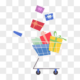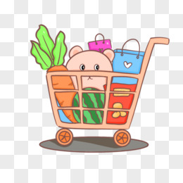 卡通手绘装满的购物车素材