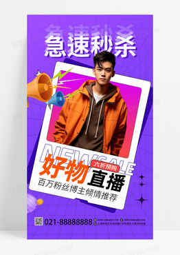 紫色双十一狂欢节直播海报活动促销手机海报