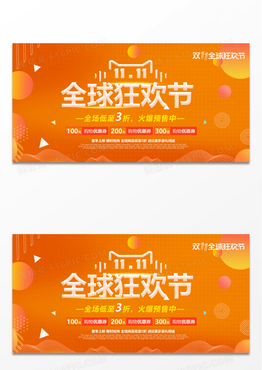 简约橙色双十一全球狂欢节双11淘宝天猫促销海报