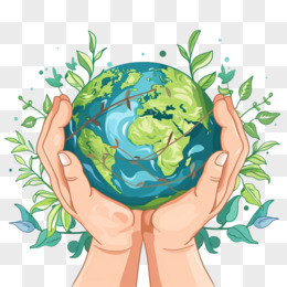 双手捧起被植物环绕的地球免抠元素