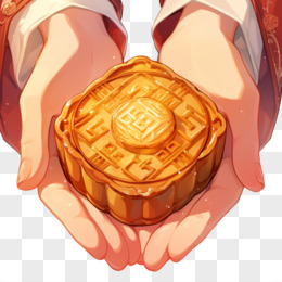 中秋双手捧着一个方形月饼免抠元素