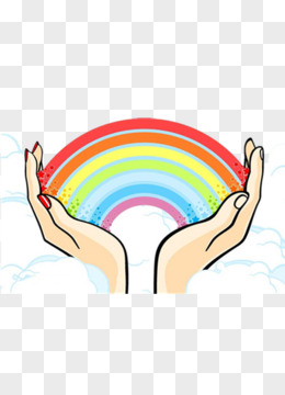 双手托起彩虹背景