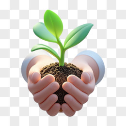 3D立体双手捧幼苗免抠元素