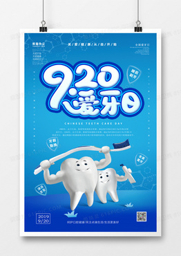 可爱的牙齿拿着牙刷3D模型免抠元素