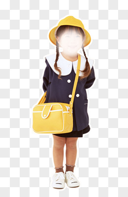 卡通手绘风格背着书包上学的女小学生免抠元素