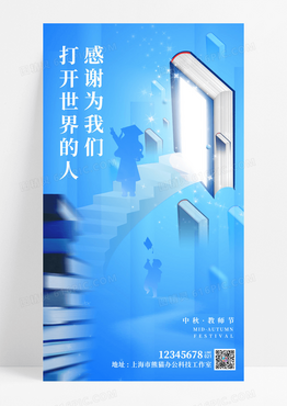 蓝色感谢为我们打开世界的人教师节手机宣传海报