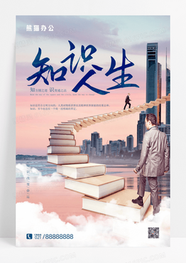3D立体学生踩书本做的楼梯往上爬免抠元素
