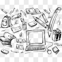 开学季卡通手绘书包书本电脑鼠标铅笔线稿
