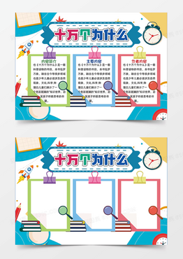 十万个为什么闹钟文本框书本学习蓝色手抄报