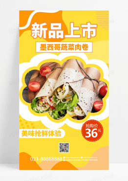 黄色墨西哥蔬菜肉卷美食促销活动海报