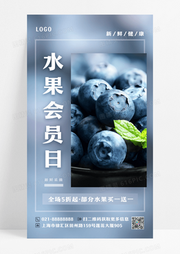 蓝色新鲜水果海报蓝莓海报水果会员日水果ui手机海报
