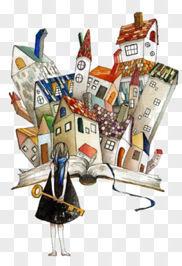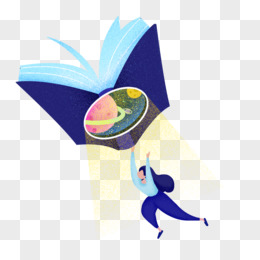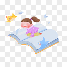卡通手绘女孩翻开知识的大门免抠创意插画素材