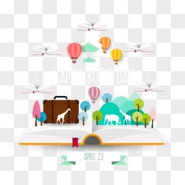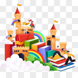 手绘卡通快乐女孩坐在书上飞行场景元素