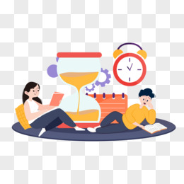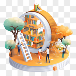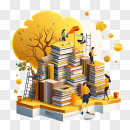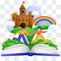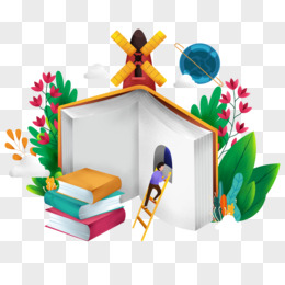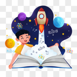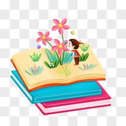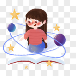 手绘卡通男孩女孩沉浸在书的海洋创意元素