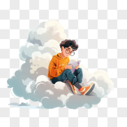 卡通女孩坐在书上免抠元素